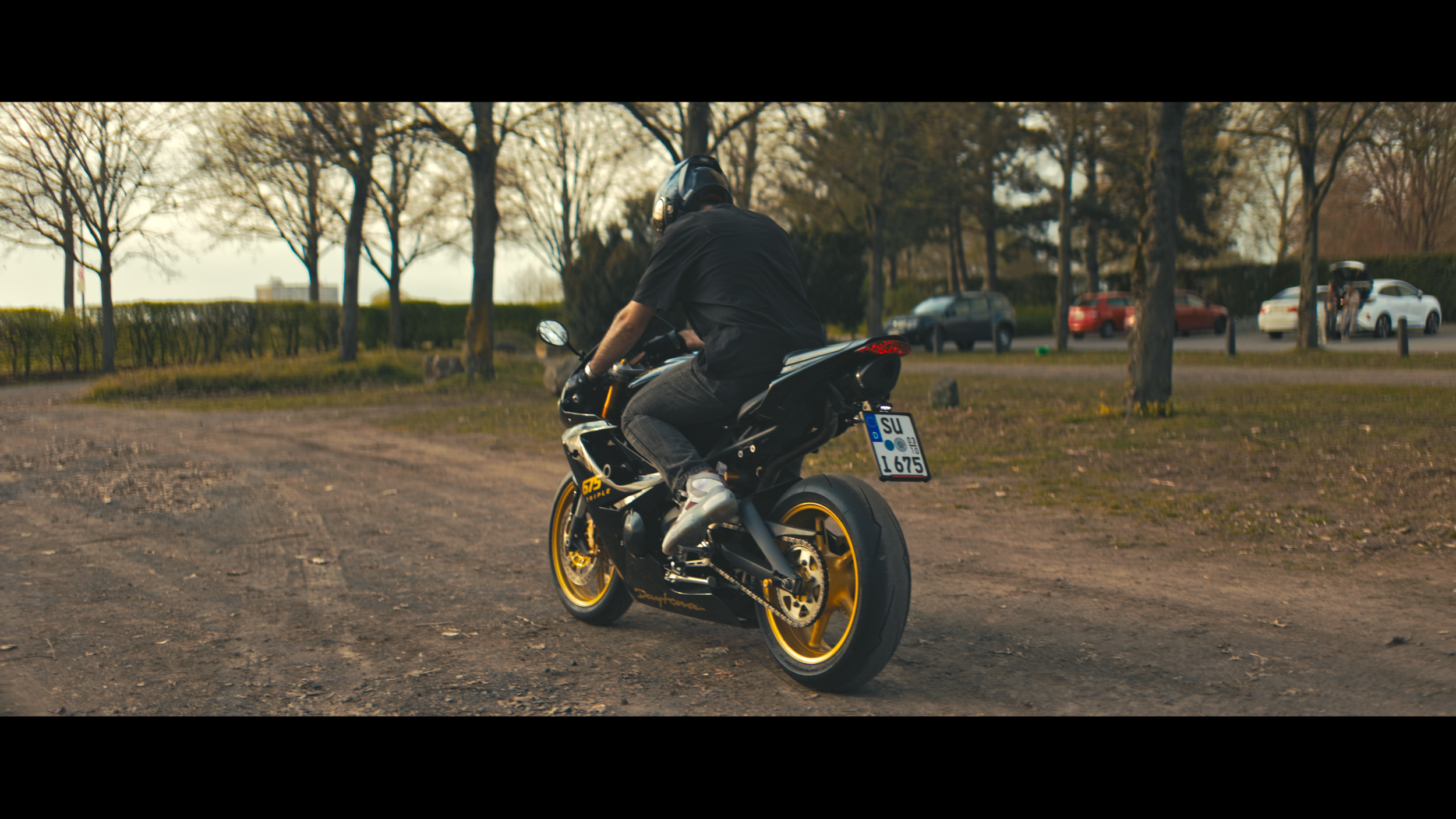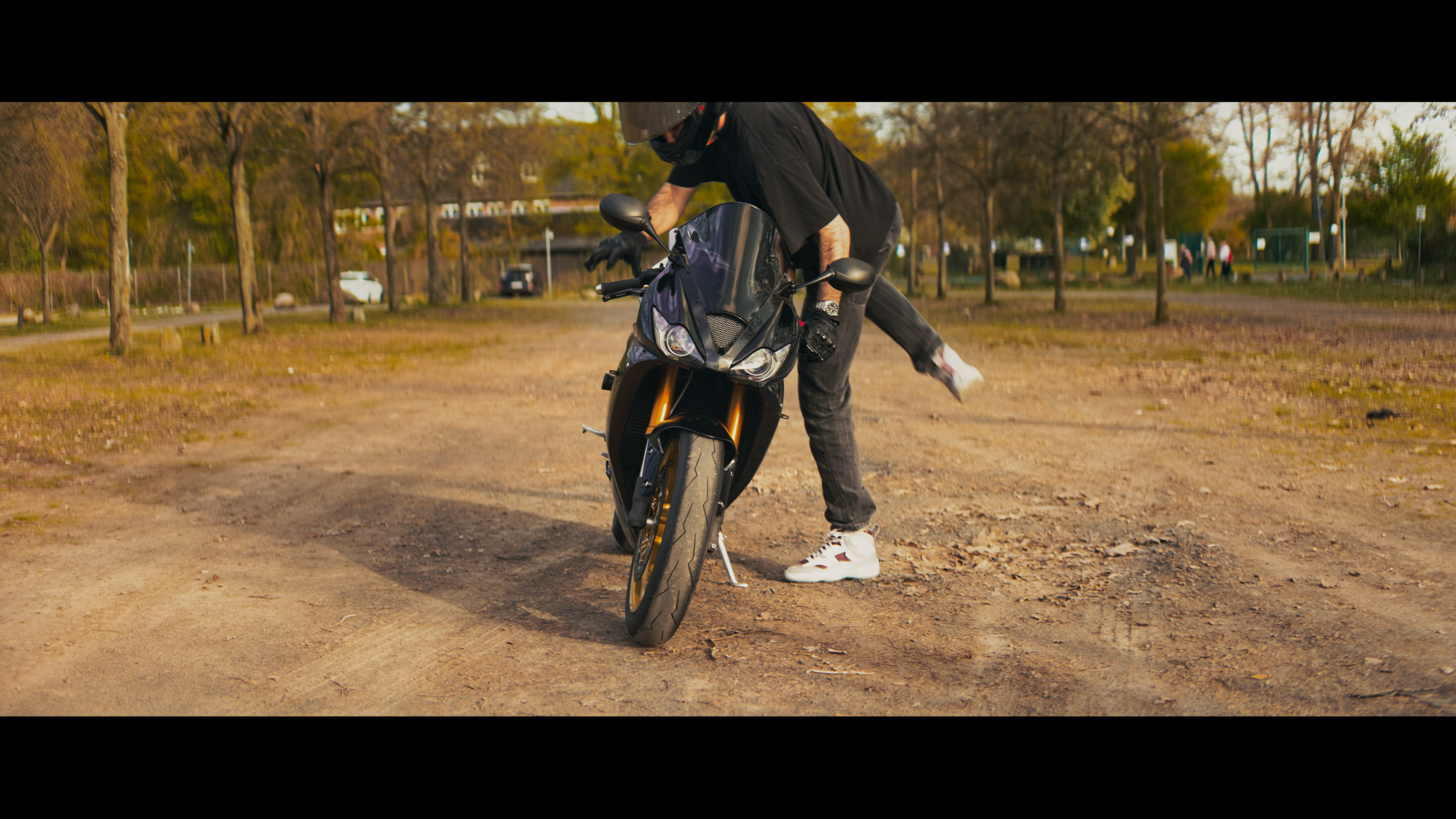 Ich habe angefangen, kleine Szenen einzubauen – wie das langsame Zugehen auf das Motorrad, das Aufsteigen oder das Starten. Nichts Übertriebenes, eher ruhige, kontrollierte Bewegungen. Genau in diesen Momenten entfaltet das Objektiv seine Stärke. Es geht weniger um Perfektion, sondern vielmehr um Gefühl und Timing